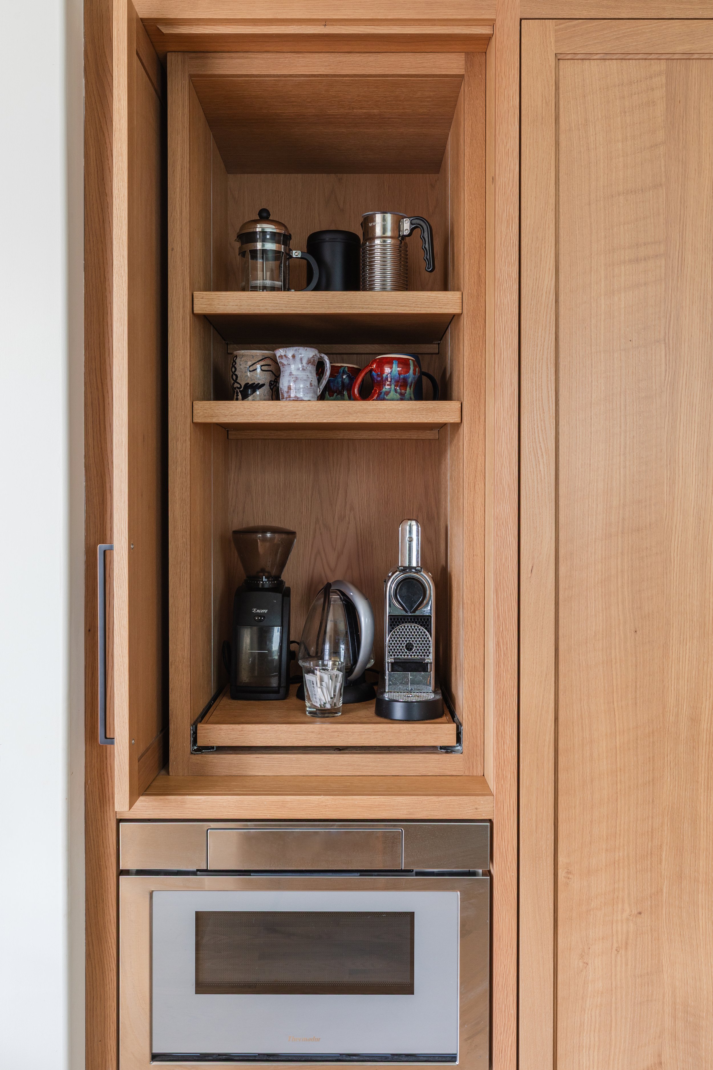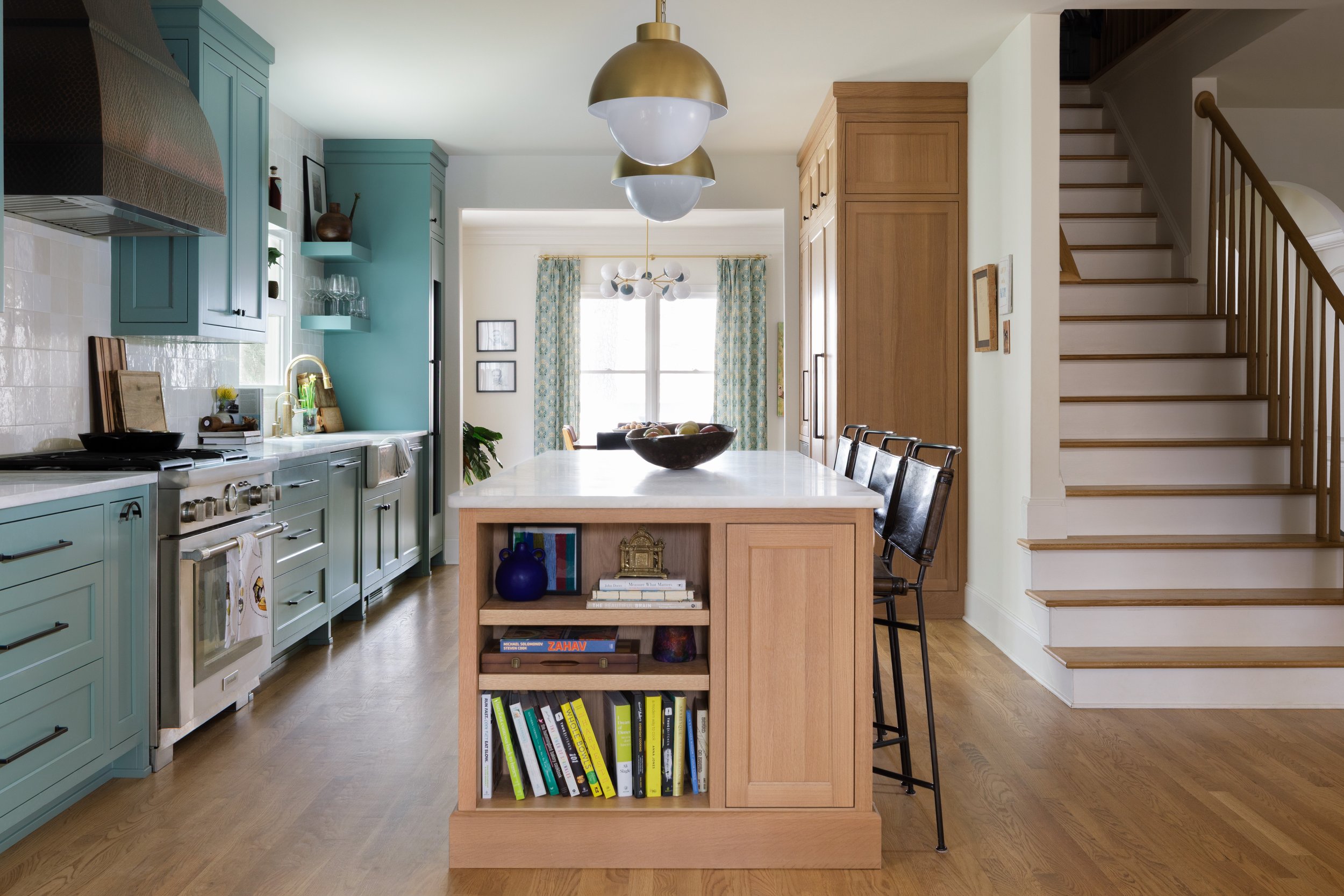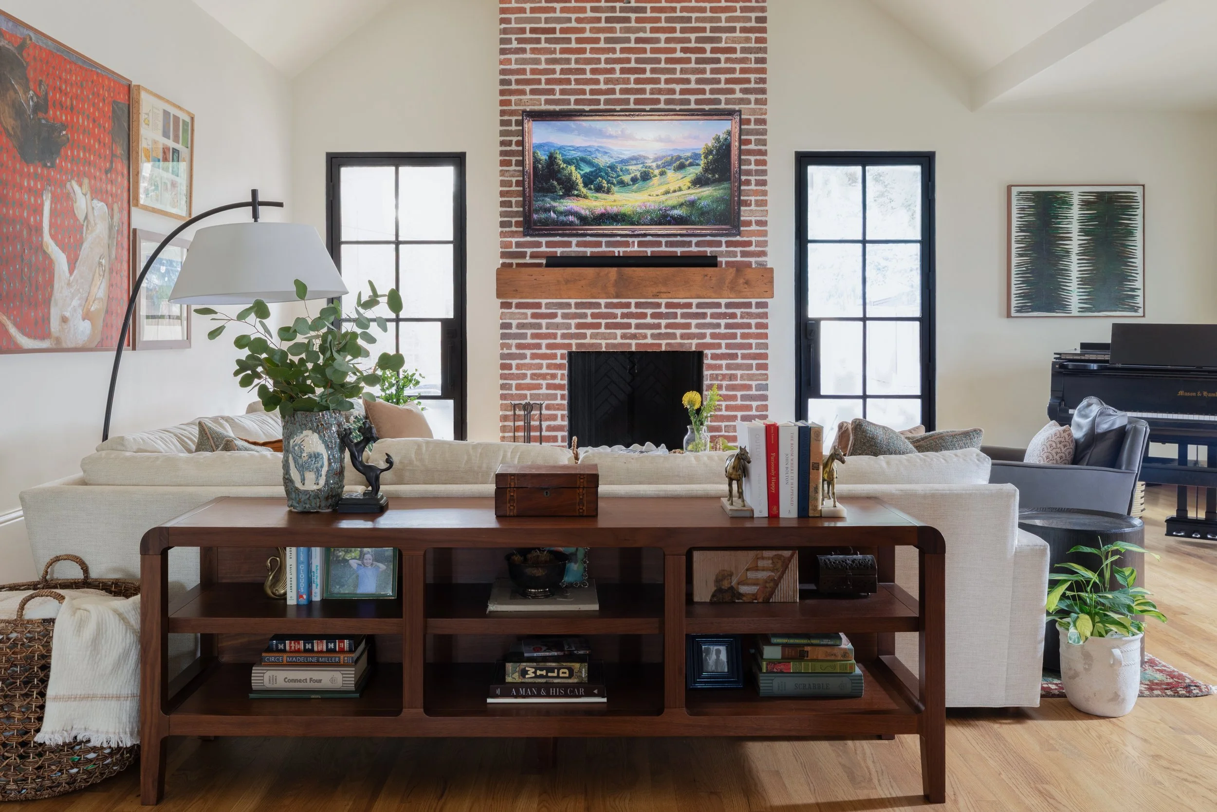 The original floorplan was broken up into a kitchen that was much too small for the size of the house, closed off stairwell and rooms which lacked function for a busy family. The spaces were all given a fresh look and opened up while still maintaining some separation and maximum wall space for an incredible art collection.